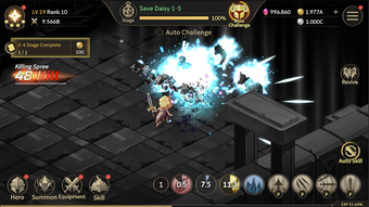 ด้วยการแตะเพียงเล็กน้อยผู้เล่นสามารถควบคุมเกมและทำเควสที่ซับซ้อนและซ้ำซากได้ เกมยังมีระบบการเกิดใหม่ที่ผู้เล่นสามารถฟื้นชีพตัวละครเพื่อกลายเป็นแข็งแกร่งยิ่งขึ้น